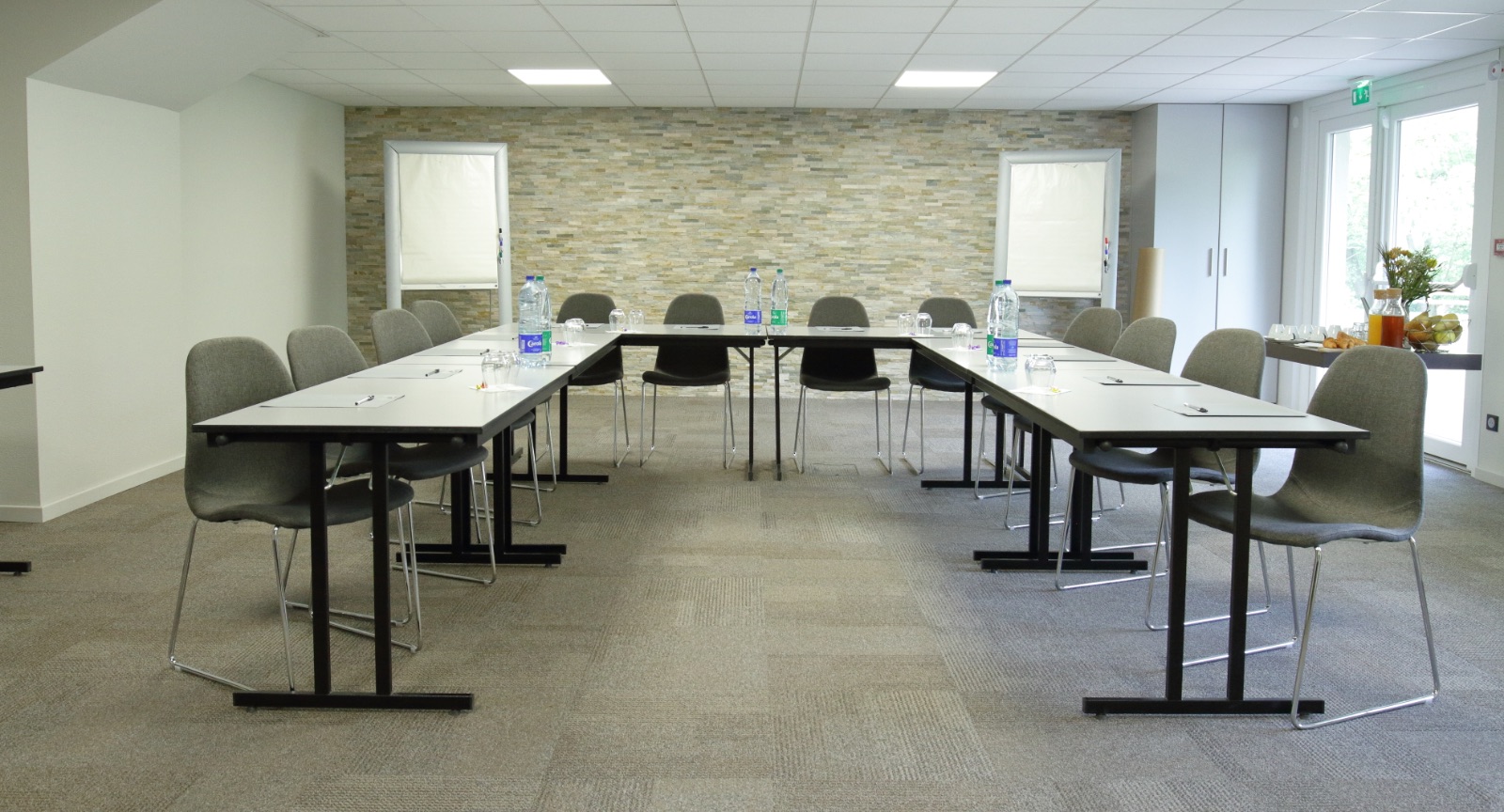 • La salle de séminaire, d’une surface de 60 m², avec accès direct au jardin, pouvant accueillir jusqu’à 25 personnes (ou 30 en configuration théâtre) ;