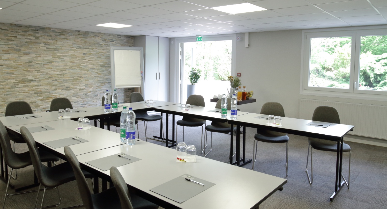 • La salle de réunion “Véranda”, fraîchement rénovée, particulièrement adaptée aux groupes de 10 personnes ou moins, offrant un cadre intimiste et inspirant.